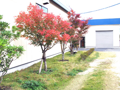 春は新緑を、秋は紅葉を楽しめます。職員の憩いの場です。